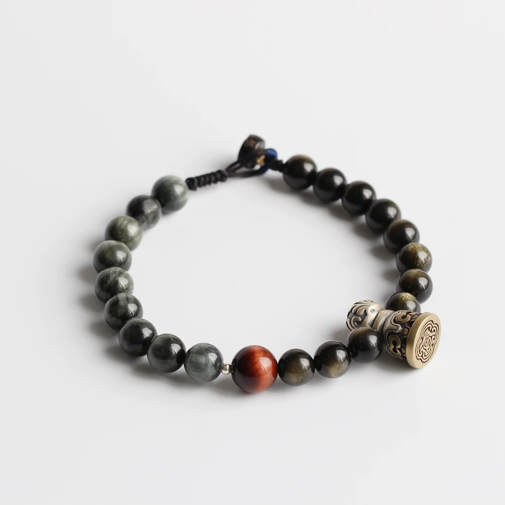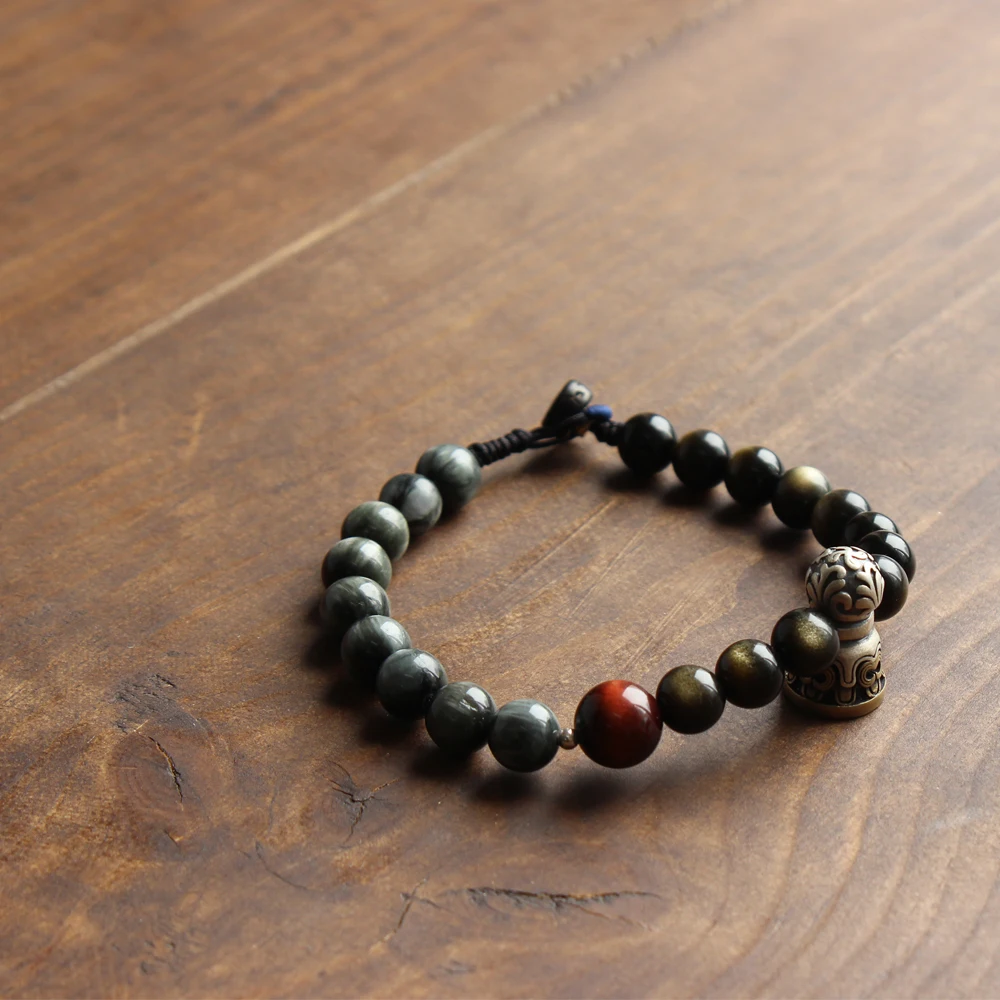 BEST 8mm Eagle Eye Stone With Golden Obsidian Tibetan Totem Vajra Charm Buddhism Handbraided Lucky Knots