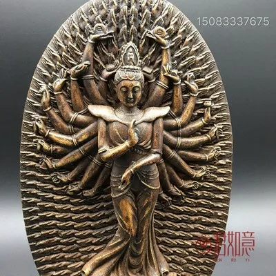 Exquisite antique stone carving thousand hand Avalokitesvara Buddhist brand ornament